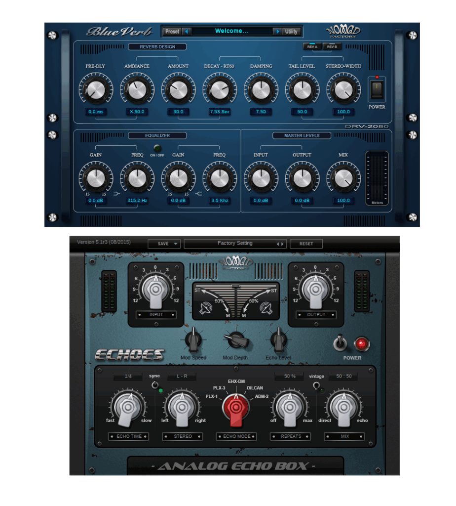 Fig 2. De arriba hacia abajo: BlueVerb DRV-2080, Echoes Analog Echo Box.